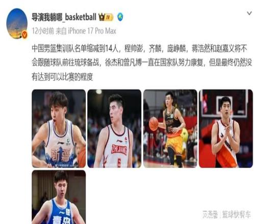 从这一点上来看,在徐杰、曾凡博、庞峥麟、齐麟、赵嘉义、程帅澎以及蒋浩然出局后,男篮出征最终12人名单也就浮出水面了。后卫线胡明轩、赵睿、廖三宁、高诗岩、赵继伟。锋线则是张镇麟、王浩然、朱俊龙、李弘权。内线大概率则是胡金秋、余嘉豪、徐昕。而焦泊乔和贺希宁,大概率会被放弃。或者,作为临时备胎人,继续留在大名单上,以备不时之需。